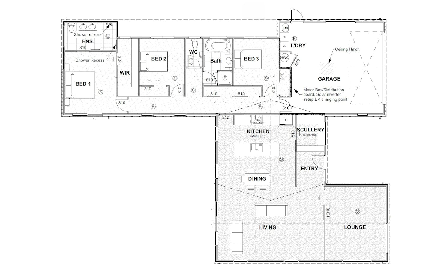 This home offers 3 generously sized bedrooms with a custom ensuite and walk-in wardrobe for the spacious master. Additionally, there are 2 living areas, because we all know a separate lounge is definitely a must-have! Along with a purposeful kitchen and custom scullery for all your everyday needs, this house & land package carries many modern amenities nearby, energy-efficient features, and a functional layout.